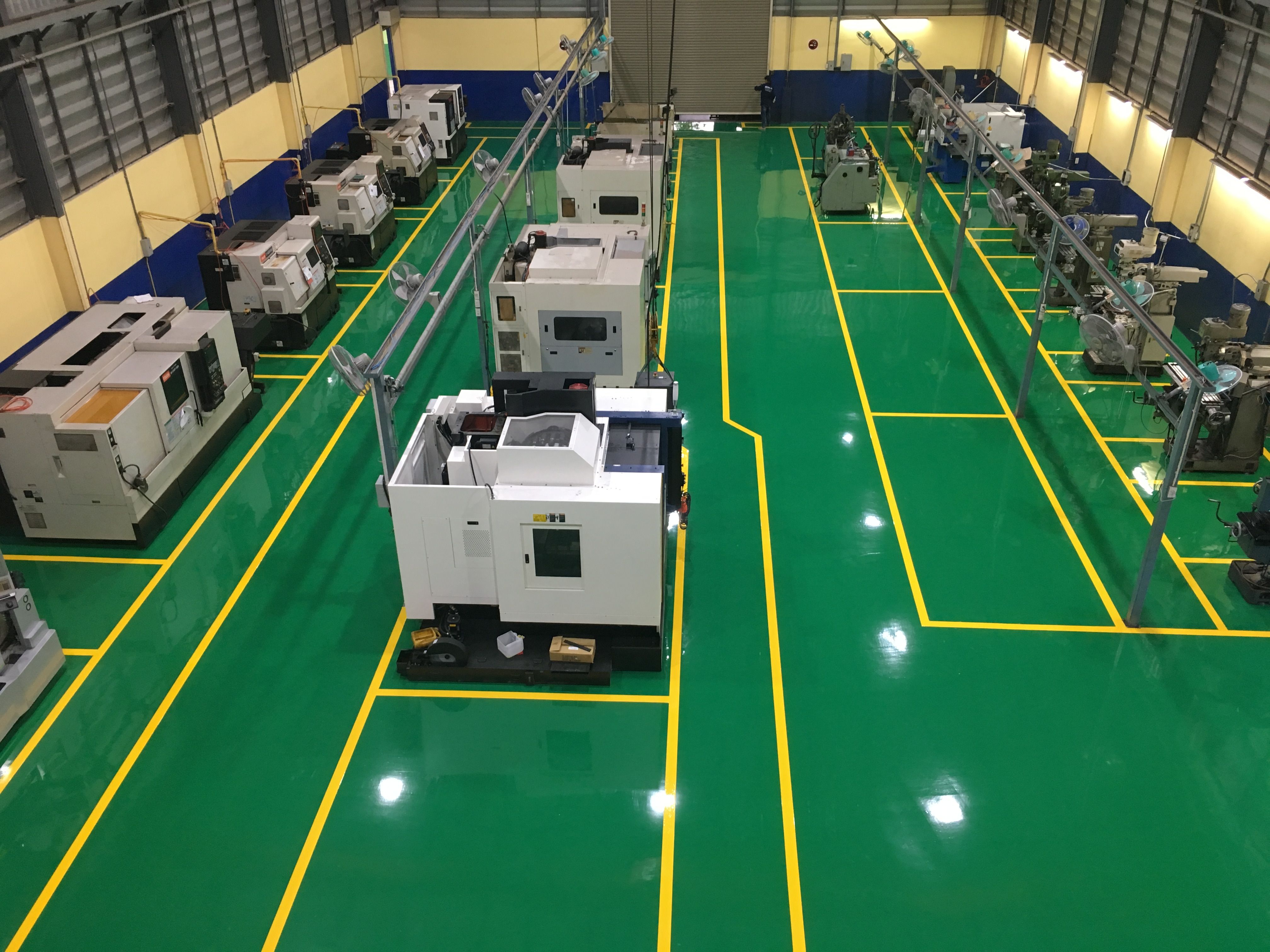 พื้นบริเวณประกอบและผลิตของโรงงาน,พื้นโรงงานโดยทั่วไปทุกโรงงาน, พื้นศูนย์บริการรถยนต์, ห้องเก็บแบตเตอร์รี่, คลังสินค้า, ห้องแล็บ ห้องทดลอง, คลีนรูม ห้องปลอดเชื้อ, ห้องเครื่อง, โรงพิมพ์, เวิร์คช็อพ, โรงงานประกอบชิ้นส่วนอิเล็กโทรนิก, โรงงานกระดาษและผลิตเยื่อกระดาษ, ซุปเปอร์มาเกตหรือศูนย์การค้า, อาคารจอดรถ และอื่นๆ